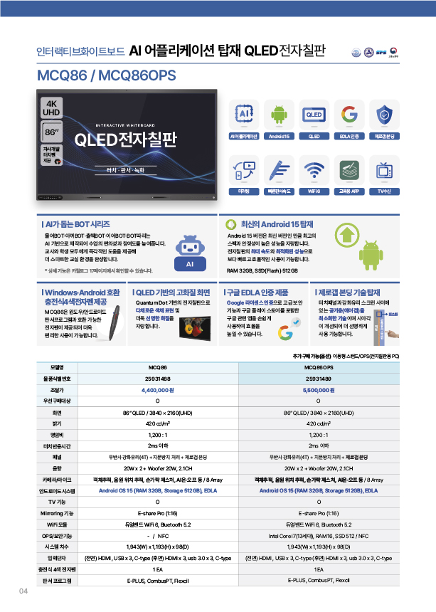 * 충전식 4색 전자펜 제공(Window, Android 호환)